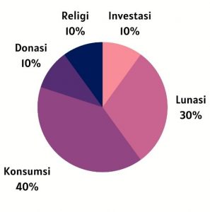 - 10% (Rp1juta) untuk Religi yaitu membayar zakat, infaq, sedekah.